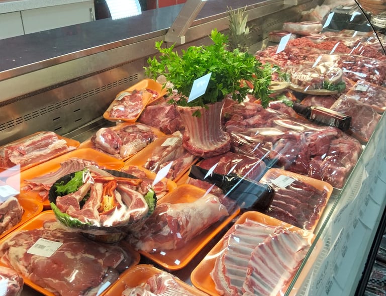 Et, tavuk ve balık gibi kırmızı ve beyaz et ürünleri.